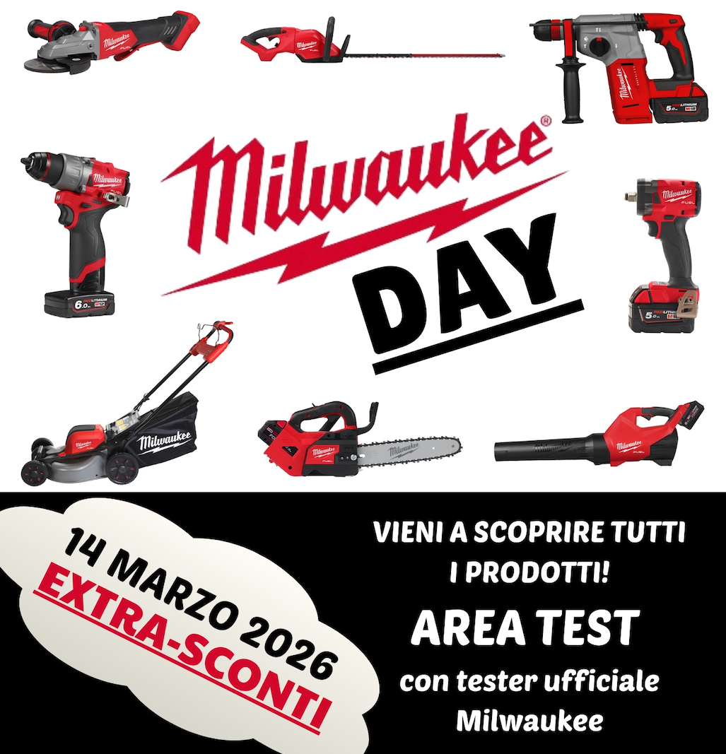 Vieni a provare e scoprire tutta la gamma di elettroutensili e macchine da giardino Milwaukee! Sarà presente un loro tester ufficiale per rispondere ad ogni tua esigenza!