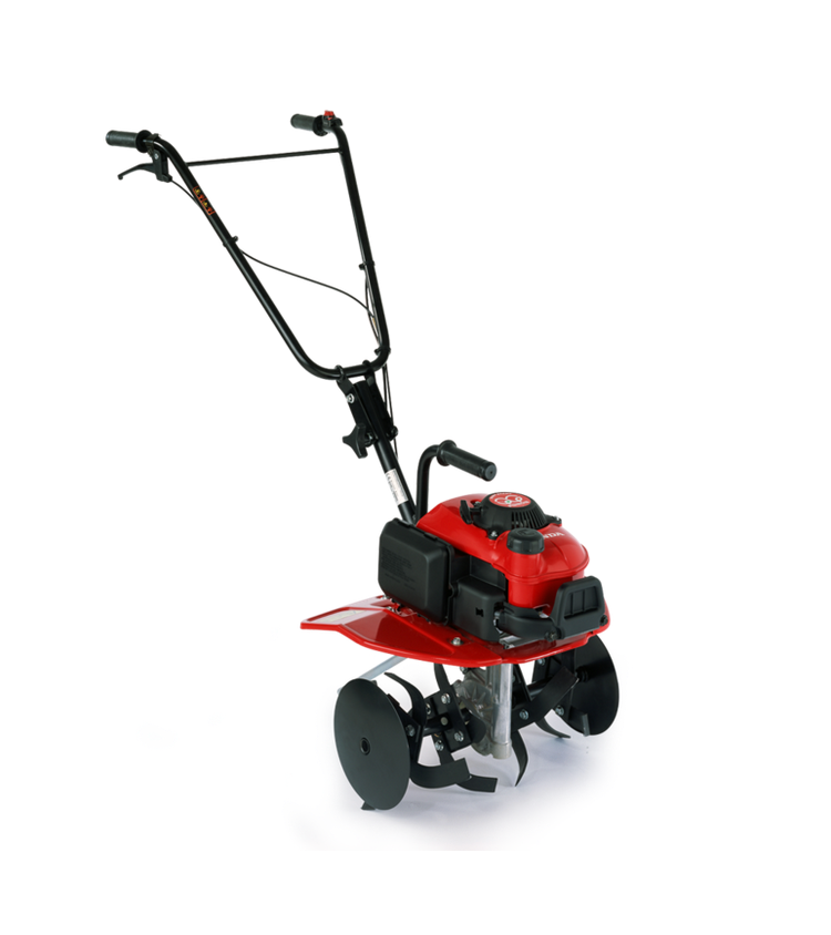 Una motozappa portatile con un accessorio opzionale.